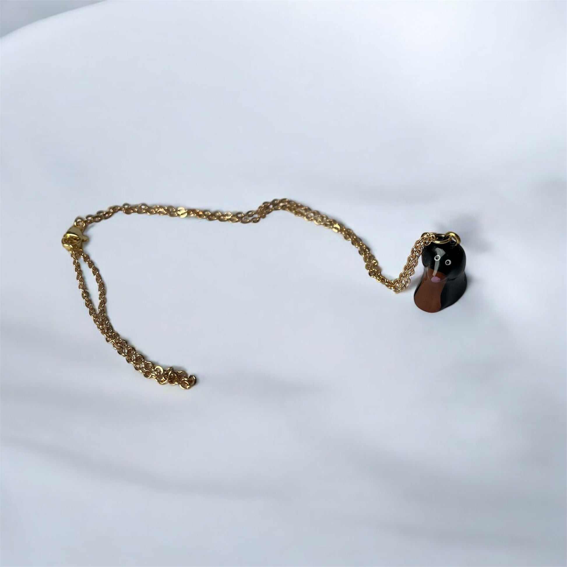 Handmade in the UK, this charming Cockapoo pendant necklace is crafted from clay, hand-painted with love, and sealed with a glossy resin finish—making each curly-eared pup delightfully one of a kind. Featuring a 18k gold-plated chain and findings, it's a unique accessory for any dog lover.