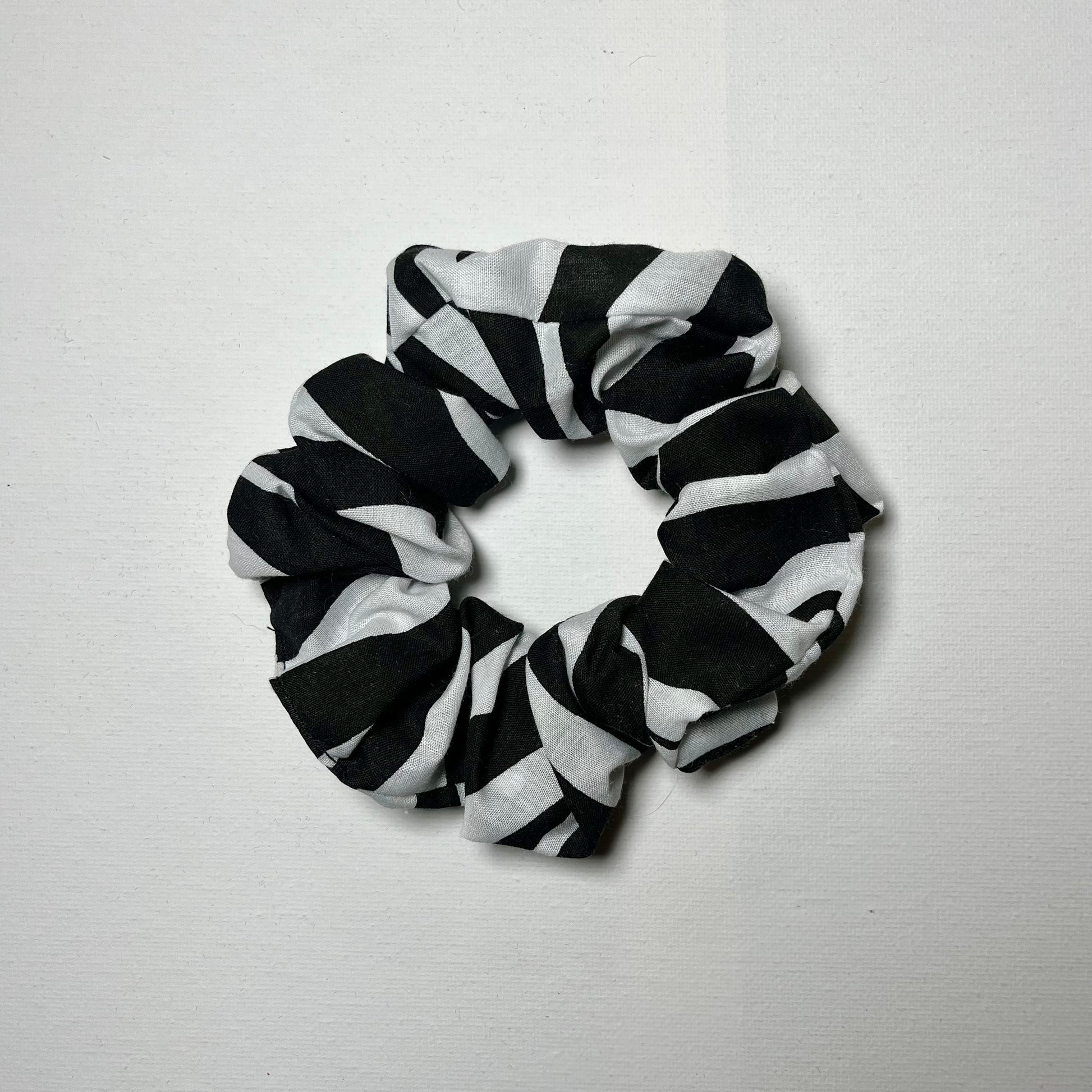 Handmade in the UK, these eye-catching scrunchies are crafted from fabric scraps, giving high-quality poly-cotton a second life. Featuring a striking black and white zebra-style print, these scrunchies are the perfect blend of edgy and chic. Each pack includes two scrunchies—one large (approx. 8" diameter) and one small (approx. 5" diameter)—ideal for mixing and matching. As each piece is handmade, slight variations make every set truly unique.