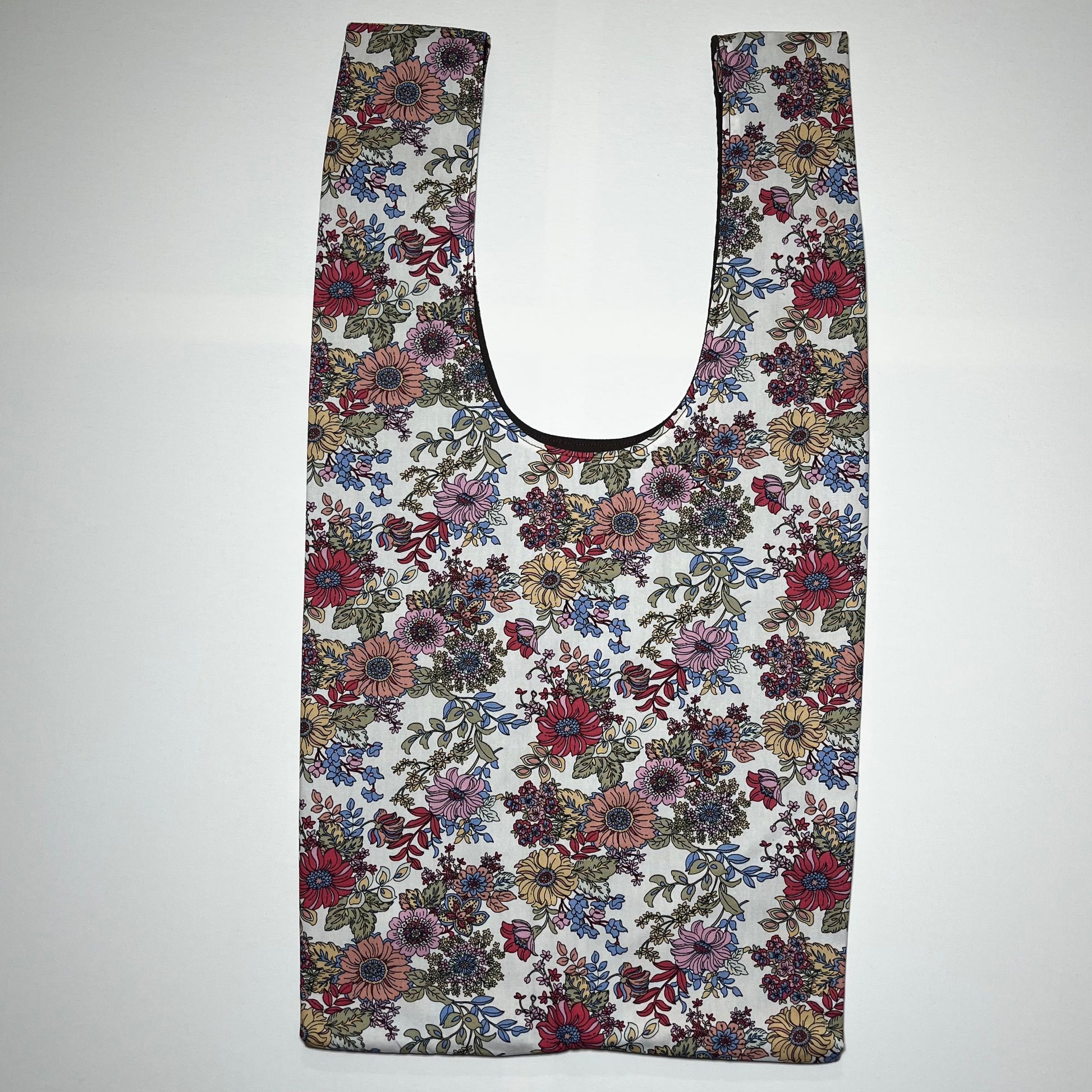 Handmade in the UK, this one-of-a-kind shopper bag is crafted from repurposed fabric scraps, giving new life to high-quality materials. Featuring a crisp white cotton base adorned with vibrant floral illustrations, this bag is both elegant and eye-catching. The brown cotton inner lining adds warmth and durability, making it a stylish and sustainable alternative to plastic bags.