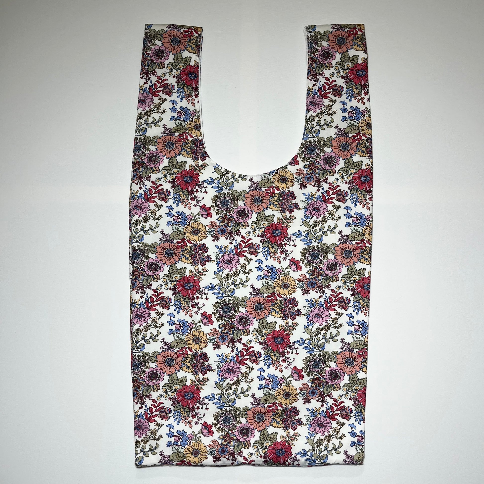 Handmade in the UK, this one-of-a-kind shopper bag is crafted from repurposed fabric scraps, giving new life to high-quality materials. Featuring a crisp white cotton base adorned with vibrant floral illustrations, this bag is both elegant and eye-catching. The white cotton inner lining adds a clean finish to the design, making it a stylish and sustainable alternative to plastic bags.