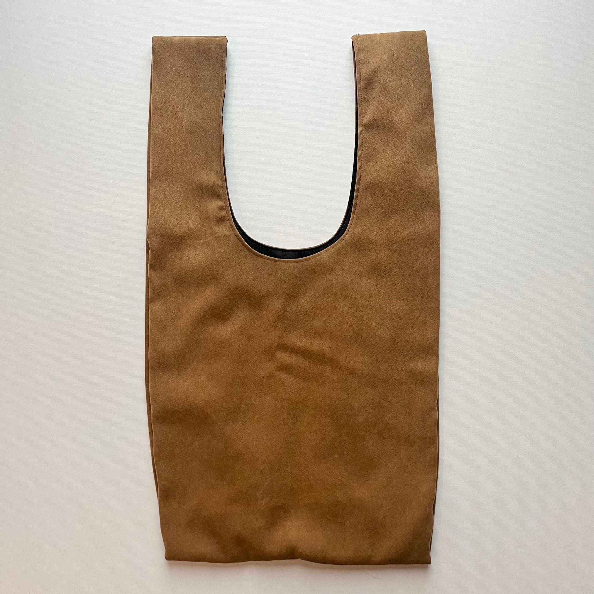 Handmade in the UK, this one-of-a-kind shopper bag is crafted from deadstock fabric, giving new life to high-quality materials. Featuring a smooth, suede-style brown outer and a sleek black poly-cotton lining, this bag is both durable and effortlessly stylish. A perfect eco-friendly alternative to single-use plastic bags!