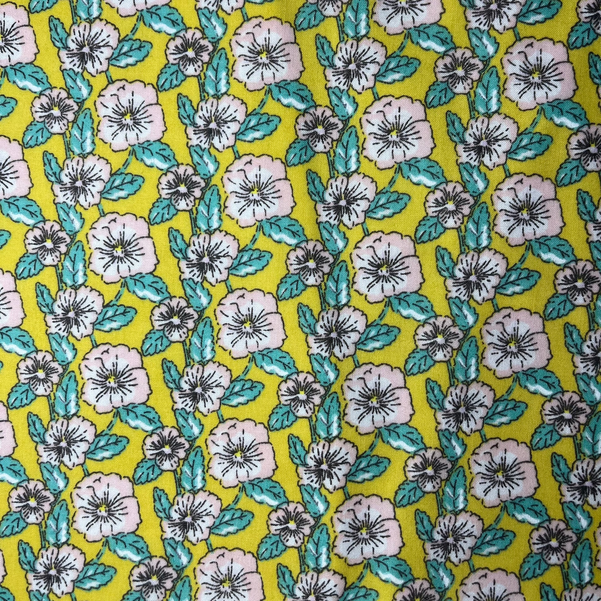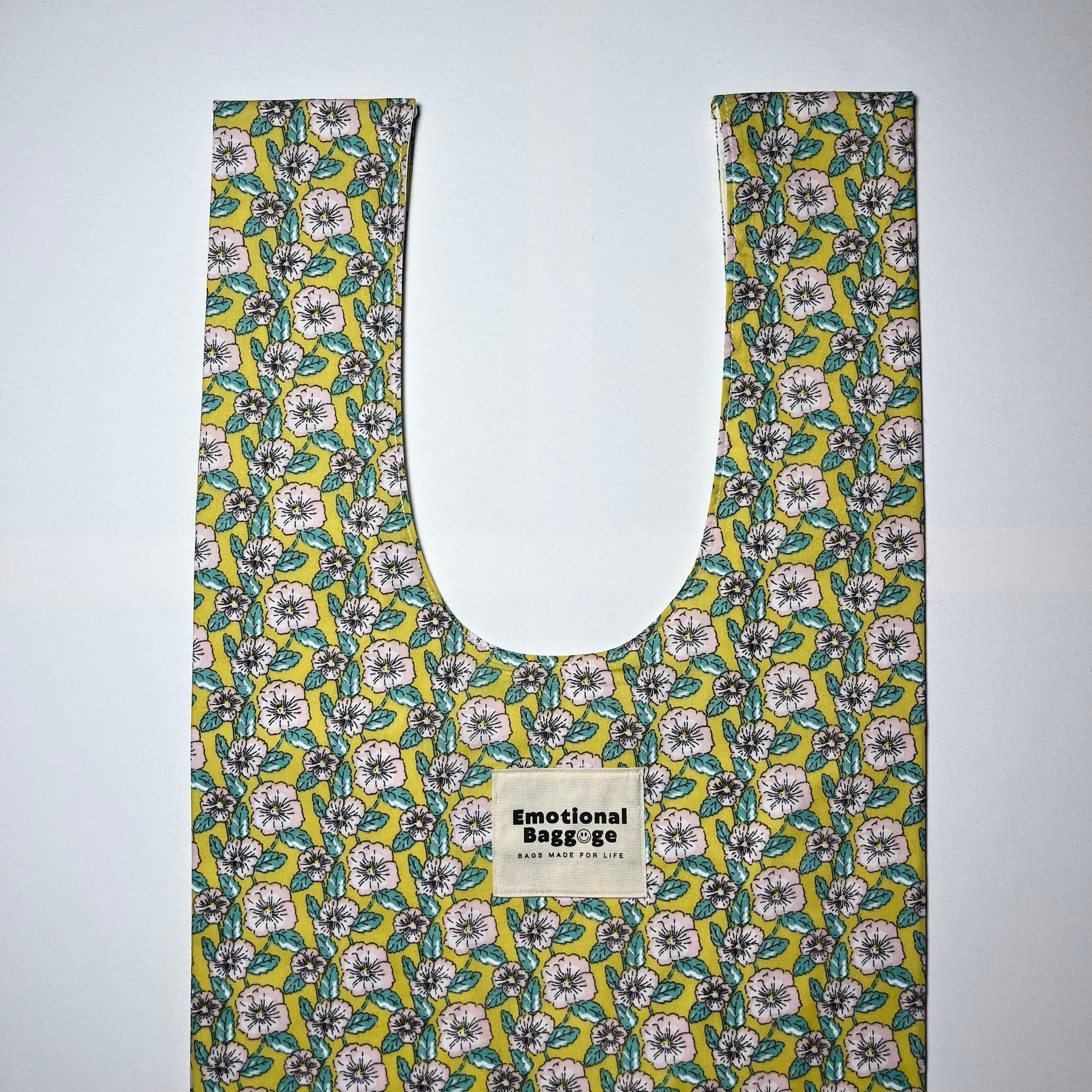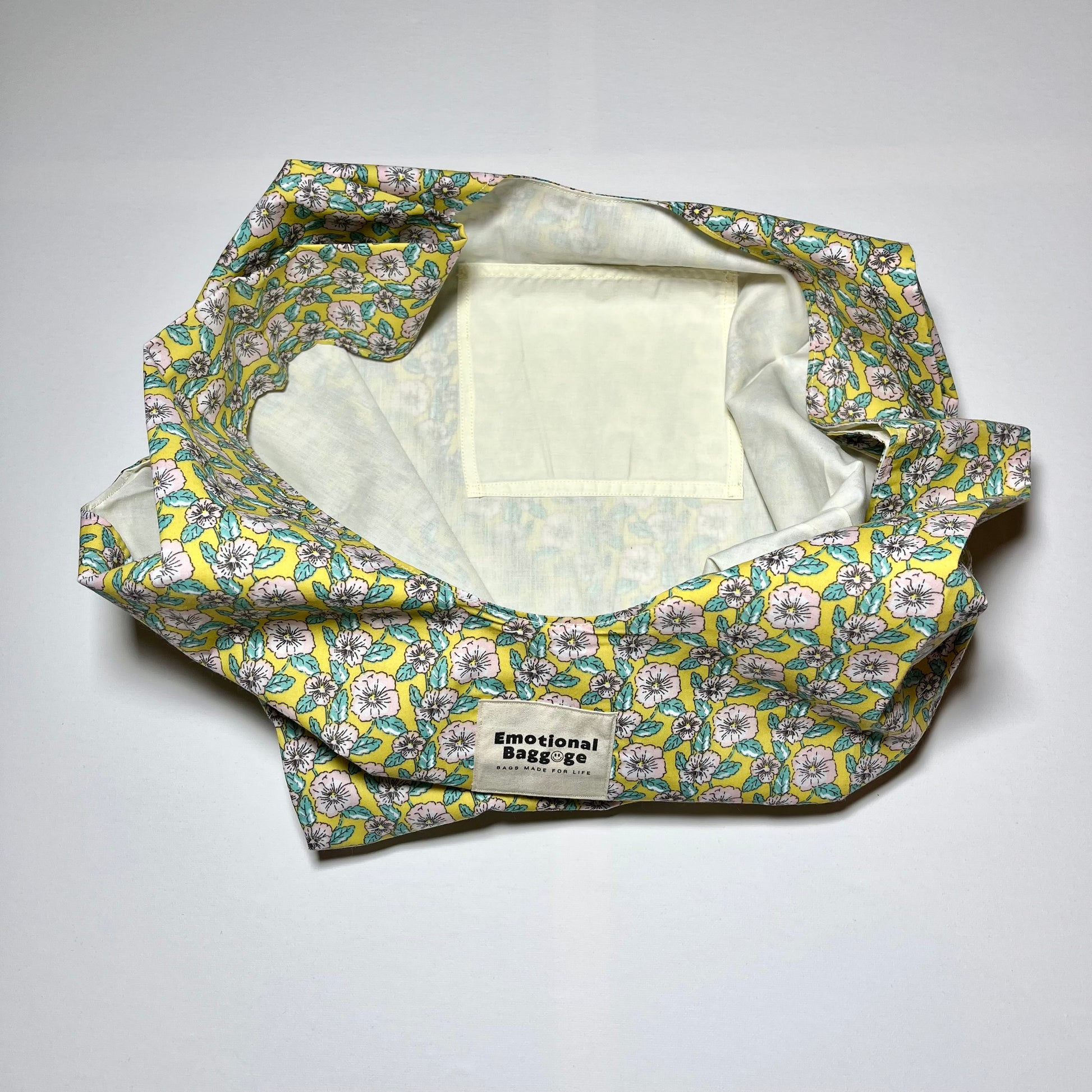 🌱 Fabric: Upcycled mustard floral polycotton outer with a cream polycotton lining